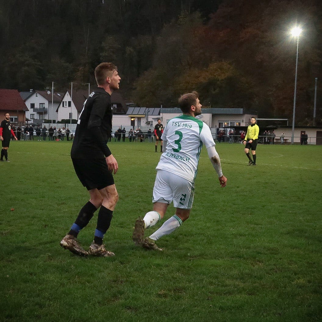 Bei typischem Novemberwetter hatte der TSV auch in Halbzeit zwei den besseren Start. Manglers Abschluss wurde allerdings noch entscheidend abgefälscht und kullerte so am Kasten vorbei (46.). In der Folge bewies Herb gegen Bujdo nochmals sein Können (54.), bevor Pfeiffer auf der Gegenseite die Riesenchance zum 2:0 vergab (66.). Das sollte sich auch postwendend rächen, denn Steppacher besorgte nach einem schnell ausgespielten Angriff, bei dem die TSV-Defensive keinen Zugriff bekam, nur eine Zeigerumdrehung später das 1:1 für die SpVgg. Das war der Startschuss für eine überaus hektische Schlussphase mit Chancen im Minutentakt. Loidl parierte glänzend gegen Pfeiffer (68.), im gegenüberliegenden Strafraum hatte der TSV nach einem Freistoß Unterstützung vom Aluminium, das den Einschlag der Söllinger verhinderte (69.). Kurz darauf sah Innenverteidiger Guthmann die Ampelkarte, wodurch der TSV die letzten 20 Minuten mit einem Mann weniger bestreiten musste. Zunächst spielten sich die Hausherren keine nennenswerten Möglichkeiten mehr heraus. Stattdessen schienen die Auerbacher das Momentum auf ihrer Seite zu haben, als Loidl Erismann im Strafraum zu Fall brachte und Pfeiffer den fälligen Elfmeter souverän zur neuerlichen TSV-Führung verwandelte (85.). In der Schlussminute stellte der Unparteiische dann sowohl Erismann als auch den eingewechselten Kußmaul nach einem Gerangel mit glatt rot vom Feld. In der angezeigten fünfminütigen Nachspielzeit lenkte Herb einen Freistoß der SpVgg mit den Fingerspitzen noch über die Latte. Aufgrund einiger Wechsel auf beiden Seiten dehnte der Schiedsrichter die Nachspielzeit zugunsten der Heimelf noch etwas aus und die SpVgg kam nach einem langen Einwurf, den der TSV im Gestocher dreimal nicht richtig geklärt bekam, zum insgesamt verdienten Ausgleich (90.+6). In der letzten Aktion des Spiels sah auch noch Ungerer rot, womit sich der TSV noch weiter selbst dezimierte. So muss sich die Auerbacher Elf mit einem Punkt begnügen und in den kommenden Wochen wird sich zeigen, wie gut sich die weiteren Ausfälle bis zur Winterpause nun noch kompensieren lassen.