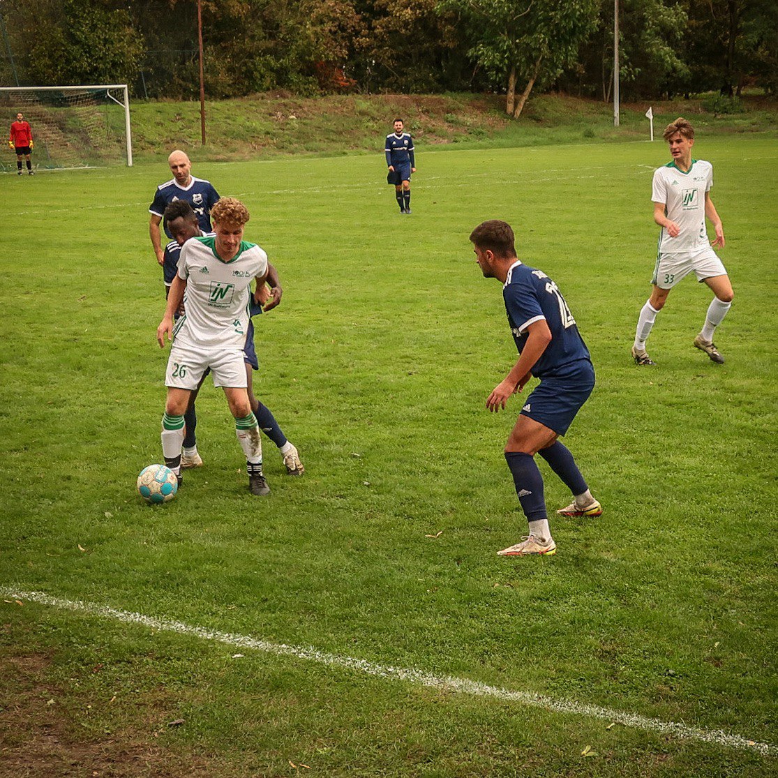 Zusätzlich zu den Langzeitverletzten Moritz Denzel, Felix Rapp, Marco Grgic und Cedric Mangler gesellten sich am Sonntag auch noch David Pitz, Erik Nolte, Kay Moser, Pascal Pfeiffer und Benny Kirchenbauer zu den nicht einsatzfähigen Spielern. Somit hatte unser Trainerduo eine wahre Herkulesaufgabe vor der Brust, eine schlagkräftige Mannschaft auf den Platz zu schicken. Dank Unterstützung aus den Reihen der Reserve stand zumindest ein 13-Mann-Kader zur Verfügung. Die TSV-Elf versuchte vom Anpfiff weg, hinten sicher zu stehen und mit einzelnen Nadelstichen nach vorne zum Erfolg zu kommen. Das Spiel machten vor allem die Hausherren, ohne dass sie vermehrt zu Hochkarätern gekommen wären. Zwar hatte Kapitän Zanda zwei gute Möglichkeiten (8./42.), doch zunächst lenkte Rapp seinen Schuss zur Ecke und beim Kopfball kurz vor der Pause wurde er noch entscheidend von Kapitän Wildenhayn bedrängt. Die größeren Chancen hatte der TSV. Balzer kam gegen DJK-Keeper Bier einen Schritt zu spät (4.), Schwabs Kopfball nach einer Ecke wurde noch geblockt (13.) und ein starkes Anlaufen von Beisel hätte Erismann in der 30. Minute krönen können, setzte seinen Abschluss aber neben den rechten Pfosten. Die größte Auerbacher Möglichkeit bot sich durch eine Standardsituation: Einen scharf aufs Tor gezogenen Balzer-Freistoß lenkte Bier gerade noch so über die Latte (31.). Da die Chancen auf beiden Seiten in der ersten Hälfte noch nicht zum Erfolg führten, ging es also mit dem torlosen Remis in die Pause.