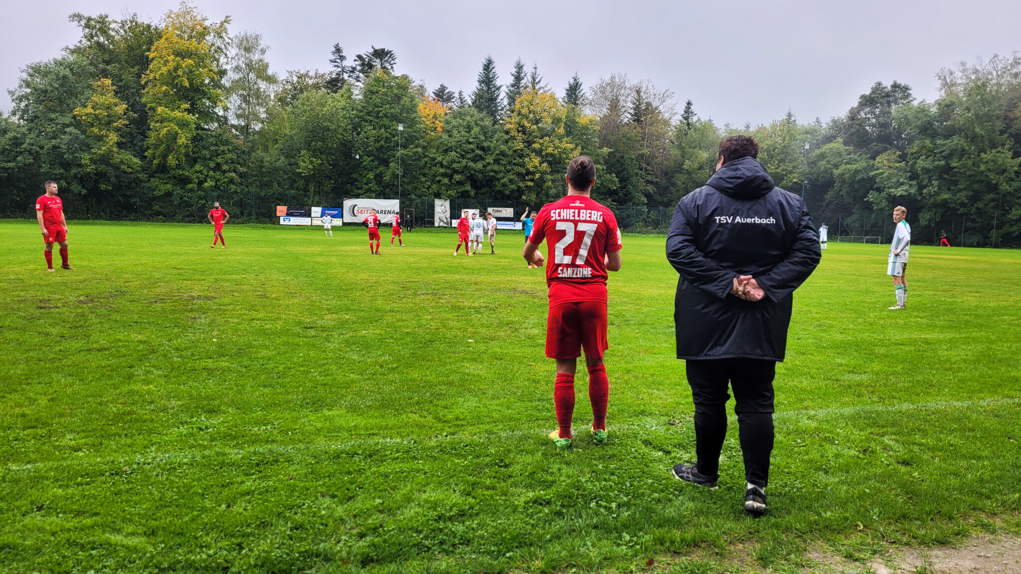 Nach dem Pausentee ging es unter sintflutartigen Regenfällen zurück auf den Platz. Es dauerte ein paar Minuten, bis so mancher Akteur im TSV-Dress nicht nur körperlich, sondern auch geistig wieder auf dem Feld war. Glücklicherweise konnten die Schielberger von dieser Schläfrigkeit erstmal nicht profitieren. Stattdessen drückte Beisel die Kugel nach einem schön ausgespielten Angriff über die linke Seite und einer Schielberger Rettungstat auf der Linie letztendlich doch noch über selbige und stellte die Auerbacher Führung wieder her (52.). Eine gute halbe Stunde vor dem Ende stellte der Unparteiische dann unseren Innenverteidiger Marc Ginter wegen wiederholten Foulspiels mit der Ampelkarte vom Feld. Die Gastgeber wollten die Verunsicherung in den Reihen der Auerbacher und ihre numerische Überzahl natürlich nutzen, vergaben erstmal jedoch einen Hochkaräter frei vor Herbs Kasten (62.), bevor sie in der 68. Minute nach einem Zuspielfehler im Fünfmeterraum keine Mühe mehr hatten, auf 2:2 zu stellen. Ein goldenes Händchen bewies Coach Bossert in der 75. Minute mit seiner eigenen Einwechslung, denn nur eine Zeigerumdrehung später stellte er höchstpersönlich die neuerliche Führung her. Eine Großchance eröffnete sich Baier in der Schlussphase dann noch nach genialem Ball von Pfeiffer, doch Maier im SC-Kasten war gedankenschnell. Weniger gut sah die Auerbacher Defensive auf der Gegenseite aus, als eine Flanke von der linken Seite nicht verhindert wurde und die Gastgeber per Kopf das 3:3 erzielten (87.). In der siebenminütigen Nachspielzeit suchten die Hausherren ihr Heil dann ausschließlich in der Offensive, doch ein weiterer Treffer sollte ihnen nicht mehr gelingen, womit die Punkte geteilt wurden. Trotz dreimaliger Auerbacher Führung ist das Remis aufgrund der Unterzahl in Hälfte zwei schlussendlich wohl eher als Punktgewinn einzustufen.