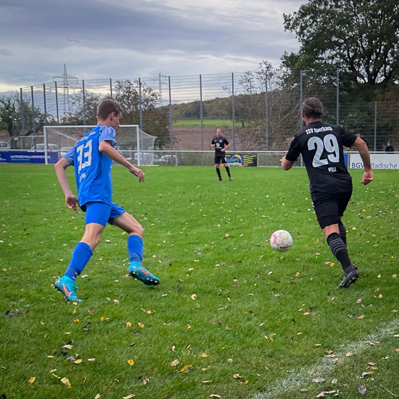 Gute Erinnerungen weckte das Duell mit dem FV Leopoldshafen am heimischen Mühlenweg, hatte man den Gast beim letzten Duell im November 2021 doch mit einem glatten 9:0 aus dem Pneuhage-Stadion gefegt. Ganz so hoch fiel das Ergebnis diesmal nicht aus, doch die TSV-Elf überzeugte dennoch mit einem souveränen Auftritt und einem Zu-Null-Erfolg. Bis der Bann gebrochen war, dauerte es allerdings eine ganze Weile, denn erst in Minute 38 brachte David Guthmann seine Farben mit einem Kopfball nach einer schönen Balzer-Flanke in Front. Zuvor taten sich die Auerbacher schwer, wenngleich sie ein deutliches optisches Übergewicht zu verzeichnen hatten. Doch der Ball wollte einfach nicht über die Linie. Die ersten Torannäherungen aus der Distanz gingen auf die Konten von Kapitän Balzer und David Guthmann (14.), eine Reihe an gefährlichen Eckbällen von David Pitz und Manuel Balzer brachten nicht den gewünschten Erfolg und auch ein Balzer-Freistoß aus aussichtsreicher Position stellte FV-Keeper Hallmannsecker vor keine größeren Probleme (36.). Nach der langersehnten Führung rettete Janic Meier durch eine Monstergrätsche dann in höchster Not vor dem einschussbereiten Glutsch (40.) und Guthmann verpasste es noch vor der Pause, eine scharfe Hereingabe von Erismann über die Linie zu drücken (44.). So blieb es bei der knappen Halbzeitführung für den TSV.