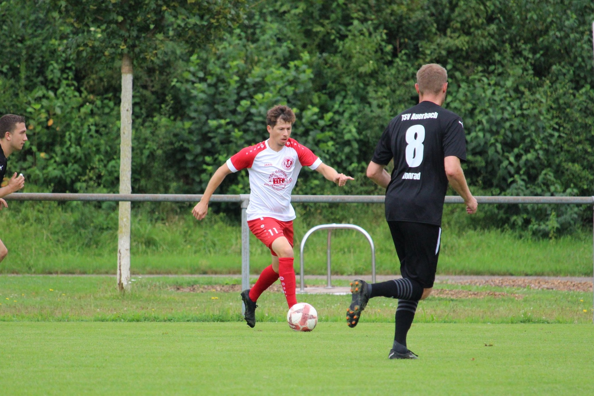 Anders als es das Ergebnis vermuten lässt, verkaufte sich die TSV-Reserve bei der dritten Garde des FV Ettlingenweier mehr als teuer und hätte angesichts der Chancen durchaus zumindest einen Punkt entführen können. Wieder mal sorgten jedoch die eigene mangelnde Chancenverwertung und individuelle Fehler dafür, dass man am Ende mit leeren Händen dastand. Aber von vorne: In einer kontrollierten ersten Hälfte besorgte Paul Dörnhöfer nach Vorlage von Nils Schraud die Auerbacher Führung (19.), was der Bossert-Elf natürlich zu mehr Selbstbewusstsein verhalf. Die Hausherren kamen zunächst nicht gefährlich vor Schorers Kasten und hatten bis auf einzelne Distanzschüsse offensiv wenig zu bieten. Auf Auerbacher Seite vergaben Neuzugang Nils Bodemer per Kopf und Nils Schraud zwei Hochkaräter, bevor der FVE einen Abstimmungsfehler in der TSV-Defensive nach einem Einwurf zum Ausgleich nutzte (44.). So ging es mit dem Remis in die Kabinen.