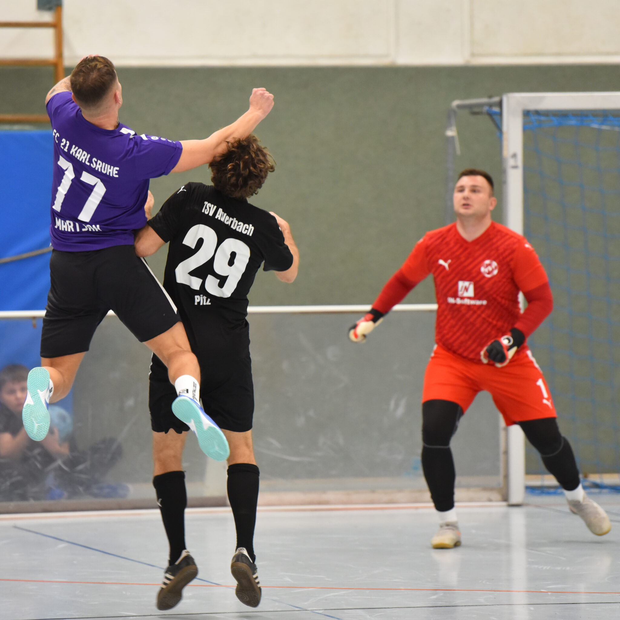 Nach dem erfolgreichen Mitternachtsturnier unserer zweiten Mannschaft wirbelten einige unserer Kreisligakicker am Sonntag dann ebenfalls in der Jahnhalle. Mit einem furiosen 8:1 über Ligakonkurrent ATSV Kleinsteinbach (Tore: 4x Erik Nolte, 2x Edgar Erismann, Marcus Wernert, Nils Schraud) starteten wir in die Gruppenphase, der FC 21 Karlsruhe wurde mit 2:0 besiegt (Tore: Manuel Balzer, David Pitz), bevor man sich dem TSV Reichenbach mit 1:3 geschlagen geben musste (Tor: Balzer). So zog der TSV als Gruppenzweiter ins Viertelfinale ein, wo mit dem FC Nöttingen 2 der ungeschlagene Sieger der Gruppe D wartete. Zwischenzeitlich musste das TSV-Team einem 0:3-Rückstand hinterherrennen, verkürzte durch Treffer von David Offterdinger und David Guthmann noch auf 2:3, doch der Ausgleich wollte nicht mehr gelingen. Somit war das Aus unter den letzten Acht besiegelt, die Auftritte machen aber Hoffnung für die weiteren Aufgaben in den kommenden Wochen. Unsere Glückwünsche gehen an den gastgebenden SV Langensteinbach, der sein eigenes Turnier im Finale gegen den SV Spielberg gewinnen konnte.