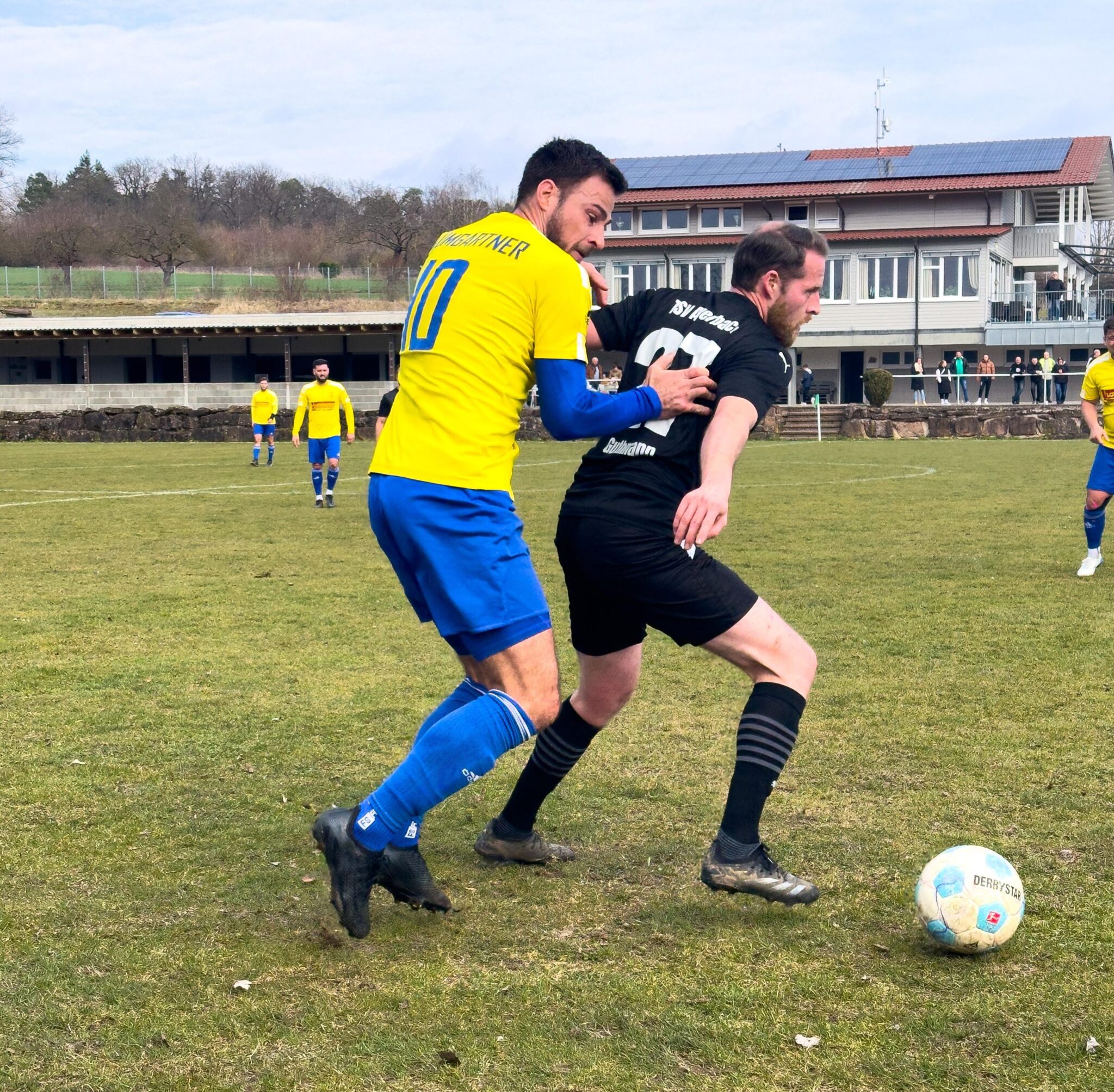 In der Kabine hatten sich die favorisierten Gäste wohl etwas vorgenommen und kamen mit gehörig Wut im Bauch zurück aufs Feld. So hatte der TSV eine knapp 20-minütige Spöcker Druckphase zu überstehen, um die drei Punkte am Mühlenweg zu behalten. Baier lenkte mit einer Wahnsinnsparade den Schuss von Halili über die Querlatte (48.), welche es vier Minuten später auch bei einer abgerutschten TV-Flanke gut mit dem TSV meinte. Das zweite Mal rettete das Aluminium in der 65. Minute bei einem Lattenkracher von Spielertrainer Tim Baumgärtner und Ruben Hotz verzog im Nachschuss deutlich. Knapp zehn Minuten vorher – mitten in der Spöcker Drangphase – hätten die Grünweißen bereits den Deckel auf die Partie machen können, doch David Offterdinger fand in Morbitzer seinen Meister, statt den Konter über den mitgelaufenen Erismann abzuschließen, der nur noch hätte einschieben müssen. So blieb es bei der Zwei-Tore-Führung für den TSV, die nach dem Lattentreffer nie mehr wirklich in Gefahr geriet, wenngleich der TV ein deutliches Plus an Ballbesitz zu verbuchen hate. Die mannschaftliche Geschlossenheit und disziplinierte Defensivarbeit verhalfen der TSV-Elf zu immens wichtigen drei Punkten, die gebührend bejubelt wurden.