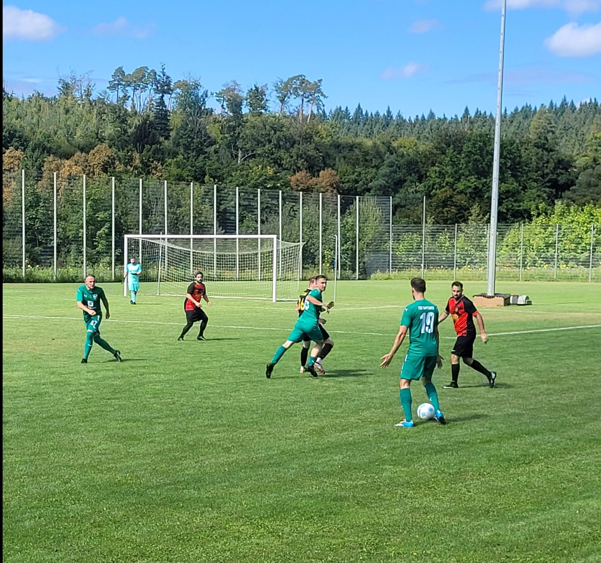 Am 3. Spieltag der laufenden Saison war es endlich soweit und unsere Reserve durfte auch ins Geschehen eingreifen. Zu Gast am Mühlenweg war der TSV Etzenrot, der nach seinem Aufstieg von der C- in die B-Klasse seine Visitenkarte im Pneuhage-Stadion abgab. Die Gäste zeigten auch direkt, dass sie sich viel vorgenommen hatten und erspielten sich in der Anfangsviertelstunde ein deutliches Übergewicht. Große Torchancen sprangen dabei jedoch erstmal nicht heraus, bis auf einen Kopfball von Emanuel Haag, den dieser völlig unbedrängt über Gohlas Kasten setzte (9.). Die Führung für den Aufsteiger nach einer halben Stunde war dann dennoch verdient – diesmal platzierte Haag seinen Kopfball besser und es stand 0:1. In der 37. Minute hätte Bönisch einen Konter vergolden können, jagte das Leder allerdings nach starker Vorarbeit von Haag am linken Pfosten vorbei. So nutzte der TSV das Momentum kurz vor der Pause, um die Partie zu drehen. Zunächst wurde Schwab im Sechzehner regelwidrig zu Fall gebracht, woraufhin Pfeifer den fälligen Strafstoß zum Ausgleich verwandelte (45.). In der Nachspielzeit bediente David Bossert jr. seinen Namensvetter in der Mitte von der linken Seite mustergültig und dieser vollstreckte zum 2:1, was das Spiel auf den Kopf stellte.
