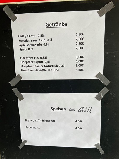 Insgesamt eine günstige Preisgestaltung. Auch hier kann ich nur die Empfehlung geben, beim TV Spöck eine Kleinigkeit zu kaufen, um den Verein damit zu unterstützen