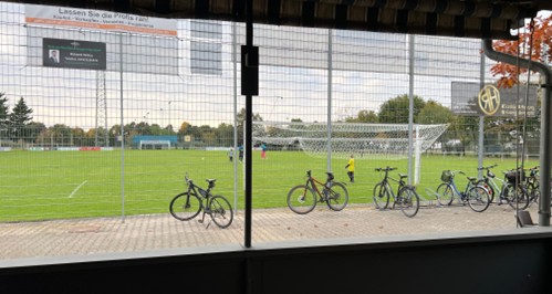 - Ca. 10-15 Meter vom Spielfeld entfernt
